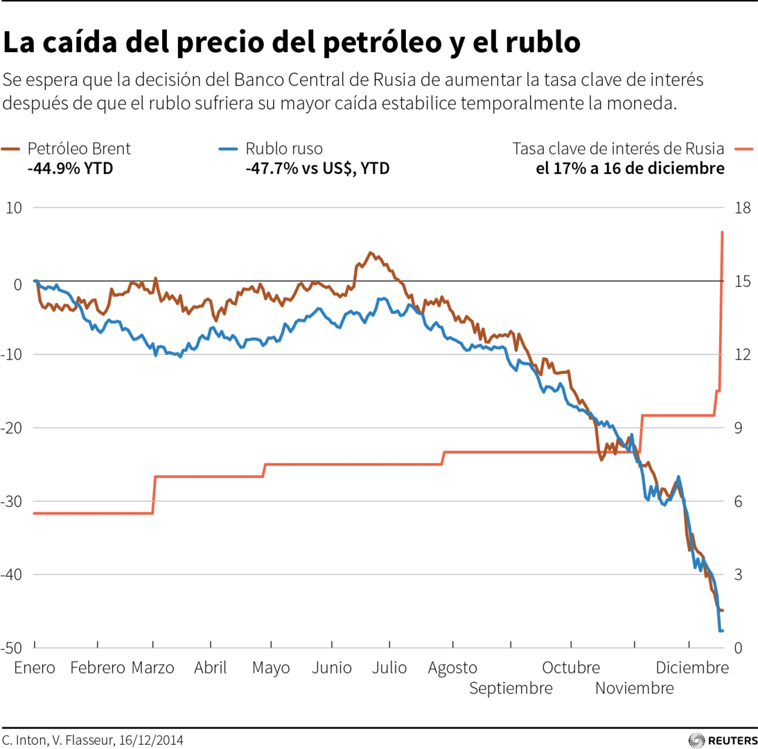 La noche del martes el Gobierno ruso adoptó una serie de medidas para estabilizar el mercado financiero a través del aumento de liquidez monetaria para los bancos, su capitalización y supervisión, según anunció el ministro de Desarrollo Económico, Alekséi Ulukáev. Rusia no contempla la introducción de restricciones monetarias como una de estas medidas.