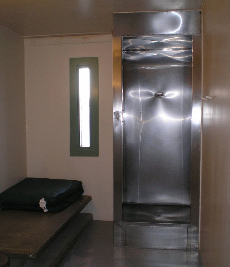 En esta cárcel los presos pasan 23 horas al día en asilamiento. Los reos son retenidos en celdas de 3,7 por 2,1 metros tras dobles puertas correderas cubiertas para que los reclusos no se vean unos a otros.