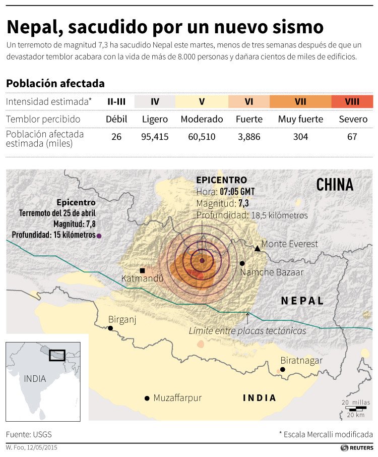 — TweetsNow India (@TweetsNowIn) 12 мая 2015El pasado 25 de abril Nepal fue escenario de un devastador terremoto que se cobró la vida de 8.151 personas, según anunció la Policía de Nepal este martes en su cuenta de Facebook.