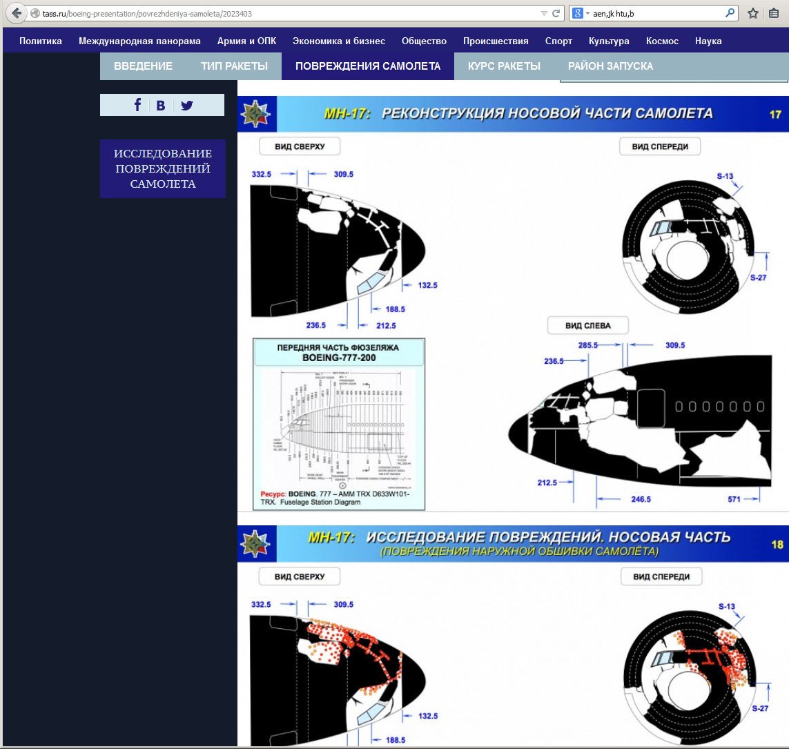 La versión completa de la presentación cuenta con 53 diapositivas y se divide en tres partes. El informe contiene una modelización detallada del impacto del misil 9M38M1 del complejo Buk-M1 contra la aeronave: se aporta un abundante número de fotografías exclusivas, gráficos y cálculos entre otros datos. Además, el documento ha desclasificado lo que ocurre después de la explosión de una ojiva de misil de este tipo y cómo se difunde la nube de elementos destructivos.