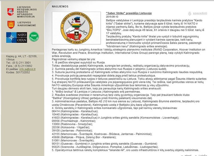 De acuerdo con la información del portal lituano 'Delfi', que cita el mensaje de los piratas informáticos, el verdadero objetivo de las maniobras militares Saber Strike que lleva a cabo la OTAN en varios países del norte de Europa es preparar la anexión de Kaliningrado, el enclave ruso situado entre Lituania y Polonia a orillas del mar Báltico.