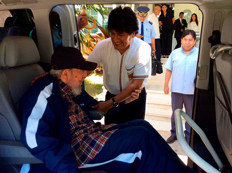 "Para Bolivia todo el cariño del mundo y mi admiración", dijo Fidel Castro, citado por la agencia estatal boliviana de información ABI. El presidente boliviano Morales tenía planes de visitar a Castro en su casa, por lo que su llegada a bordo de la camioneta le sorprendió.