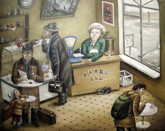 La pintora ucraniana conocida con el alias de Angela Jerih nació en la ahora tristemente famosa ciudad ucraniana de Donetsk en 1965. Su personal visión nostálgica de la vida en la URSS popularizó sus obras en todo el mundo.