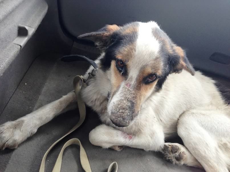 Extenuado y en un estado lamentable, el animal fue hallado por defensores de los animales. Su deterioro era tal que los voluntarios pensaron que era muy viejo, aunque tenía tan solo 3 años. En el transcurso de un año y medio el perro poco a poco empezó a acostumbrarse a la gente, empezó a comer y a esconderse debajo de los camiones. Finalmente se recuperó gracias a la ayuda de voluntarios y, al parecer, ya está listo para tener un nuevo dueño.