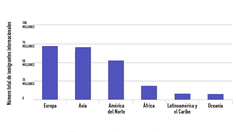 Europa y Asia juntas se han convertido en las regiones que en 2013 albergaron casi dos tercios de todos los migrantes extranjeros a nivel mundial: más de 72 millones y 71 millones respectivamente, según el informe de la ONU. América del Norte, a su vez, recibió el mismo año a más de 53 millones de personas. La región norteamericana está seguida por África, con casi 19 millones de migrantes internacionales, y América Latina y el Caribe, con casi 9 millones. Mientras que Oceanía se convirtió en un nuevo hogar para cerca de 8 millones de personas.
