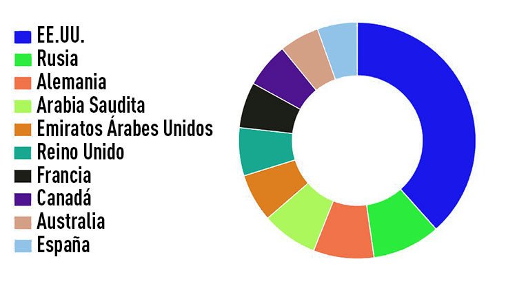 En 2013, más del 51 por ciento de todos los migrantes internacionales en el mundo vivían en diez países. Entre ellos, EE.UU. resultó ser la nación con más habitantes nacidos en el extranjero: 46 millones, casi el 20% del total mundial.