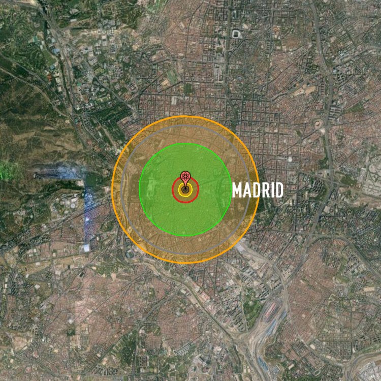 Asimismo, existe otra herramienta desarrollada por la cadena de radio PRI con la cual se puede cuantificar las dimensiones de la catástrofe que tendría el impacto de la bomba atómica de Hiroshina, la Little Buy (de 15 kilotones), sobre cualquier ciudad del mundo. Si desea probar la aplicación, pulse aquí.