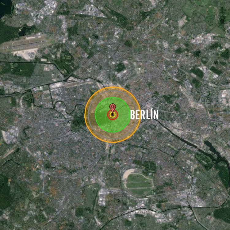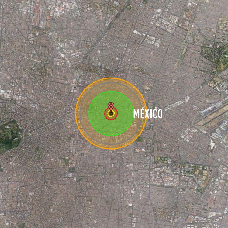 La citada simulacion permite escoger si la explosión atómica tiene lugar en el aire, a unos metros del suelo, o si la bomba explota al entrar en contacto con la superficie. Si desea probar la aplicación, pulse aquí.