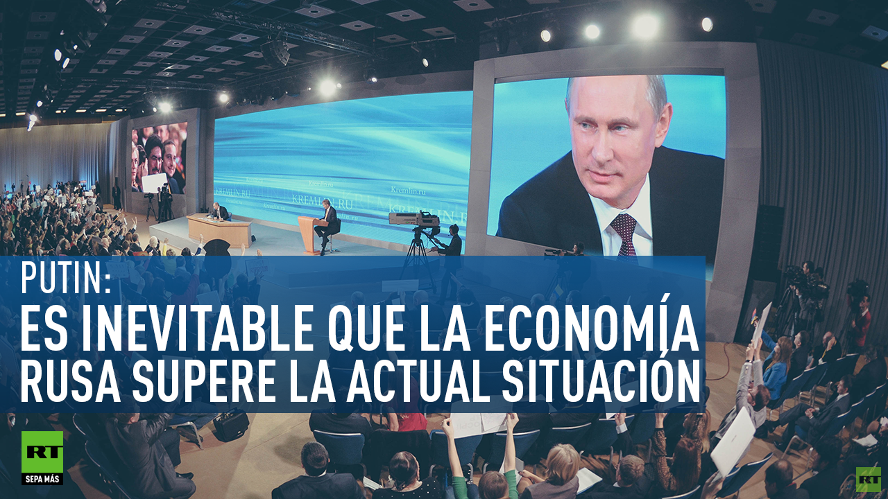 "Es inevitable que la economía rusa supere esta situación en dos años a más tardar", señaló el mandatario. Añadió además que la actual situación económica que atraviesa el país tiene que ver con factores externos, siendo uno de los principales el precio del petróleo. Putin explicó que el giro de Rusia hacia oriente no responde a razones políticas, sino a la situación de la economía mundial.