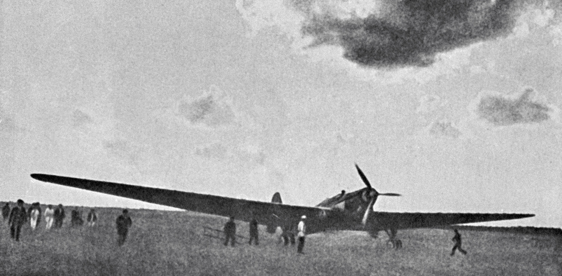 Era la aeronave soviética ANT-25, en la que el piloto Valeri Chkálov, junto con el copiloto Gueorgui Baidukov y el navegante Alexánder Beliakov, hacía historia con un vuelo que conectaba por primera vez Europa con América del Norte a través del Polo Norte. Para dar por finalizada su gesta transpolar, les quedaban unos 77 litros de combustible, por lo que tuvieron que acortar su itinerario. Estuvieron buscando un aeródromo militar para aterrizar allí y evitar que su ANT-25 fuera desmantelado por una muchedumbre ansiosa de 'souvenirs', tal y como sucedió con el monoplano de Charles Lindbergh, quien en 1927 se convirtió en el primer hombre en cruzar el Atlántico de oeste a este en solitario.