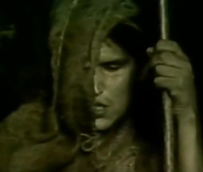En la cinta se ven mujeres, hombres y niños campesinos con un lado de su cuerpo totalmente cubierto con tela de saco, desde la cabeza hasta los pies. Según la voz que explica quiénes son, "ese costado será paralizado".