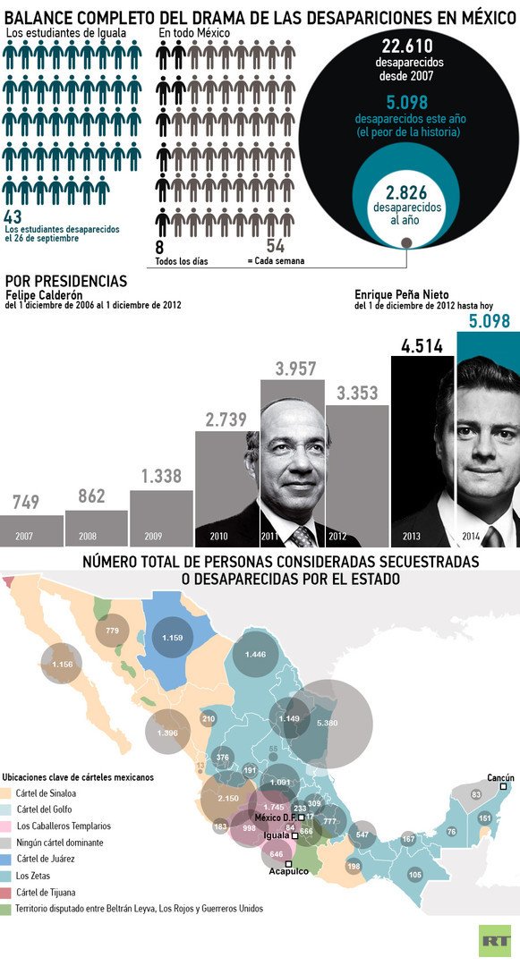Según 'The Washington Post', antes de la desaparición de los normalistas en el estado de Guerrero, mucha gente había tenido demasiado miedo a la Policía para denunciar las desapariciones. El mes pasado, tan solo siete padres asistieron a la primera reunión en el sótano de una iglesia católica mexicana donde se reúnen los familiares de los desaparecidos.