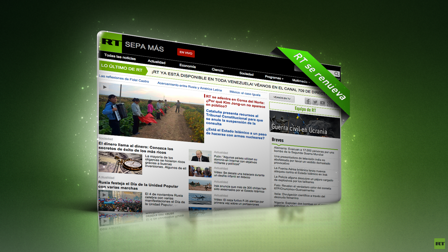Tras varios meses de trabajo, RT en español anunció el lanzamiento de su nueva página web, un sitio con un diseño más moderno y más profundo en su contenido, con el cual les resultará aún más fácil mantenerse informados.