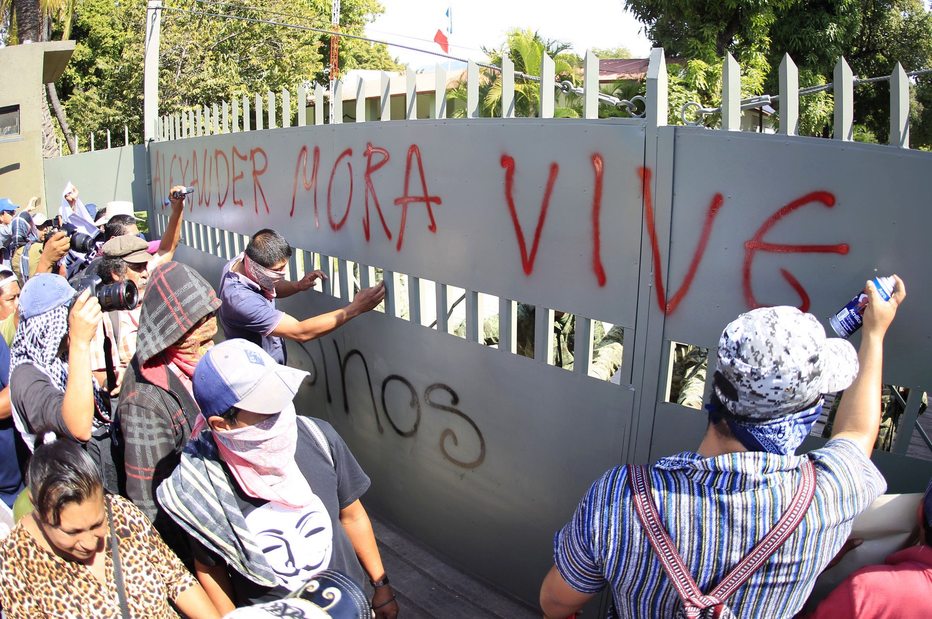 Los manifestantes bloquearon durante varios minutos la carretera Taxco-Iguala y llegaron hasta las puertas de acceso a la base del 41 Batallón de Infantería en Iguala. Según informa el diario 'La Razón', en las bardas perimetrales de la instalación militar escribieron con aerosoles consignas como "Nos faltan 43", "Aquí están los asesinos", entre otros. Además, lanzaron cohetones, cócteles molotov y piedras al interior del cuartel.
