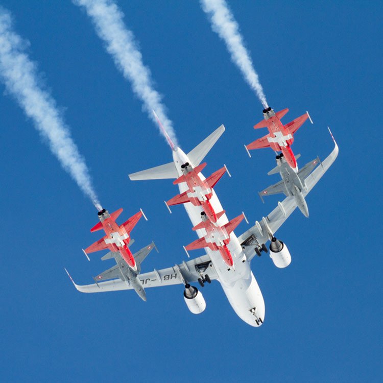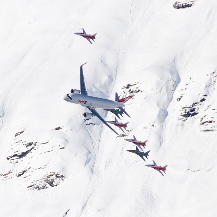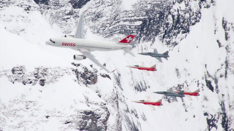 Un avión comercial de Swiss International Air Lines (Swiss) junto con sus escoltas realizó un desfile aéreo sobre el complejo de la localidad de Wengen en Oberland durante la Competición Internacional de Carreras de esquí de Lauberhorn celebrada el pasado mes de enero, informa 'Daily Mail'.