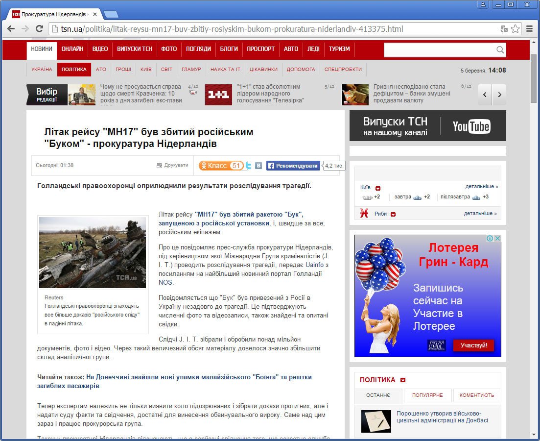 Las informaciones, transmitidas hasta por los principales canales de televisión del país como TSN, aparentemente se originan del portal Uainfo, sitio web ucraniano con el lema 'Toda la verdad de la blogosfera', que acumula diferentes informes publicados en la Red. La página cita un informe de la emisora nacional neerlandesa Nederlandse Omroep Stichting (NOS) sobre el estado de la investigación.