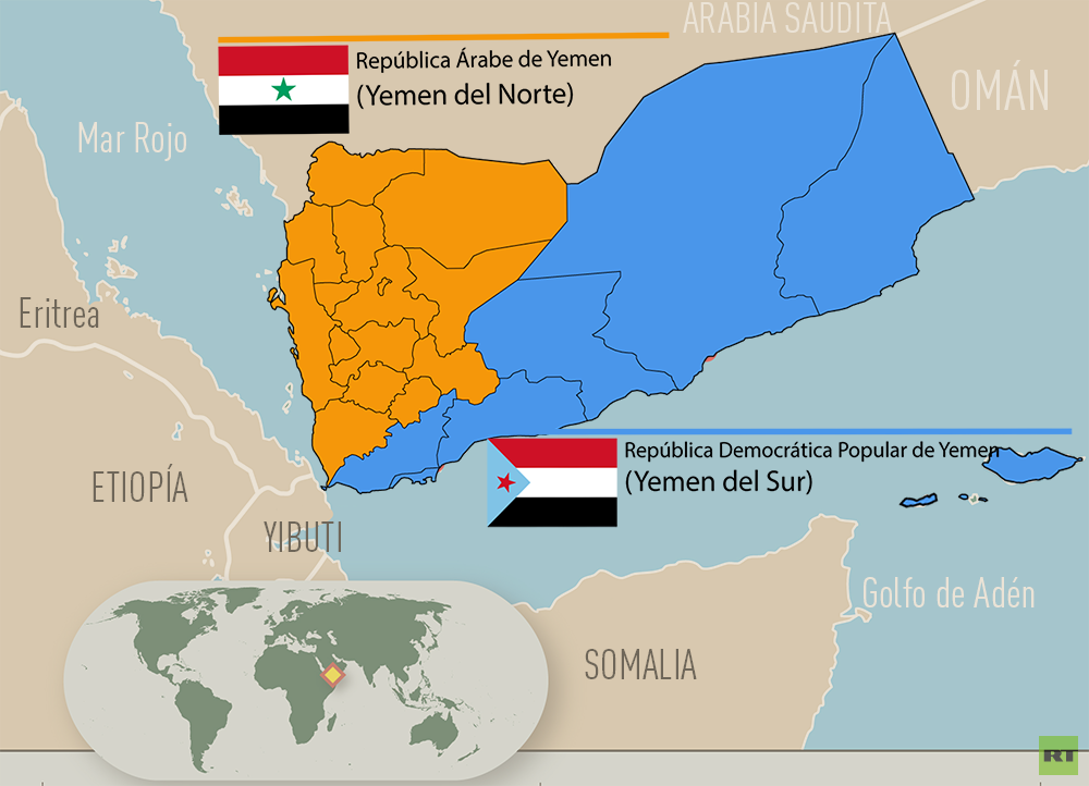 La actual República de Yemen nació en 1990 tras la unificación de la República Árabe de Yemen (Yemen del Norte) y la República Popular Democrática de Yemen (Yemen del Sur).