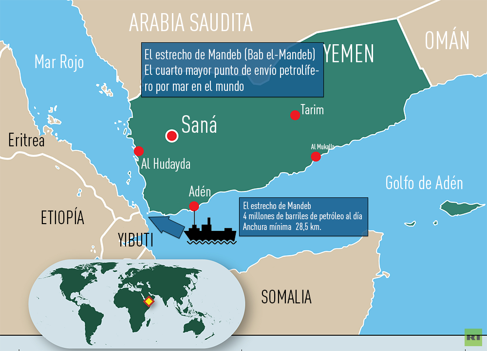 El estrecho de Mandeb es una de las arterias energéticas clave en el mundo, por lo que incluso una pequeña probabilidad de que pueda ser bloqueado provocaría una brusca subida de los precios del petróleo, como ya pasó tras el inicio de los bombardeos de la coalición.
