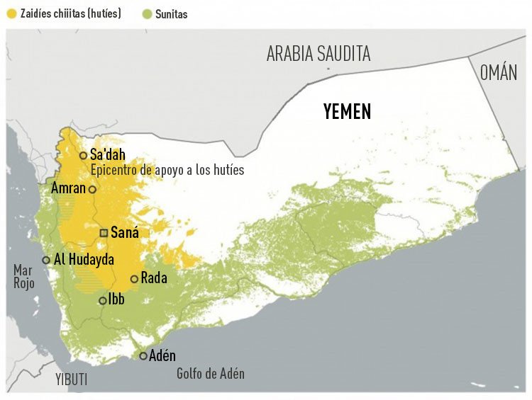 A pesar de las pérdidas causadas por los ataques aéreos de la coalición, los hutíes, o zaidíes chiitas, siguen manteniendo el control de los territorios fronterizos con Arabia Saudita, una fuente de preocupaciones para Riad, ya que los musulmanes chiitas de la Provincia Oriental del reino saudita podrían apoyar a los hutíes.