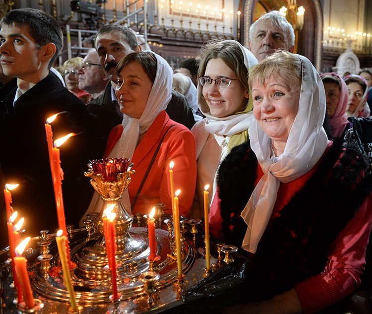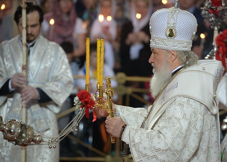 En la noche del 11 al 12 de abril de 2015, el máximo representante de la Iglesia Ortodoxa rusa, Patriarca de Moscú y toda Rusia Kiril, oficia la procesión con la cruz, los Maitines Pascuales y la Divina Liturgia en la catedral de Cristo Salvador en Moscú.