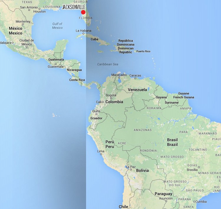 La ciudad de Jacksonville, en el Estado estadounidense de Florida, está más al oeste que cualquiera de las ciudades de América de Sur. La ciudad de Nueva York está más al oeste que, por ejemplo, Lima, la capital de Perú.