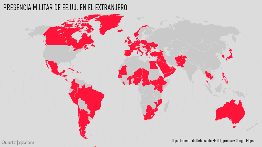 Prácticamente en todos los países del mundo hay presencia de personal militar estadounidense, ya sea en términos de agregados militares o de tropas.