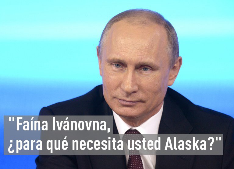 "Faína Ivánovna, ¿para qué necesita usted Alaska?", exclamó Putin el mismo año 2014, cuando una jubilada le preguntó si Alaska, que había sido parte del Imperio ruso antes de su venta a EE.UU. en 1867, podría seguir el camino histórico de Crimea y reunificarse con Rusia. "Rusia es un país del norte, el 70% de nuestro territorio se encuentra en el norte o en el extremo norte. ¿Se encuentra Alaska en el hemisferio sur? Allí también hace frío. Mantengamos la calma respecto a ese asunto", contestó Putin.