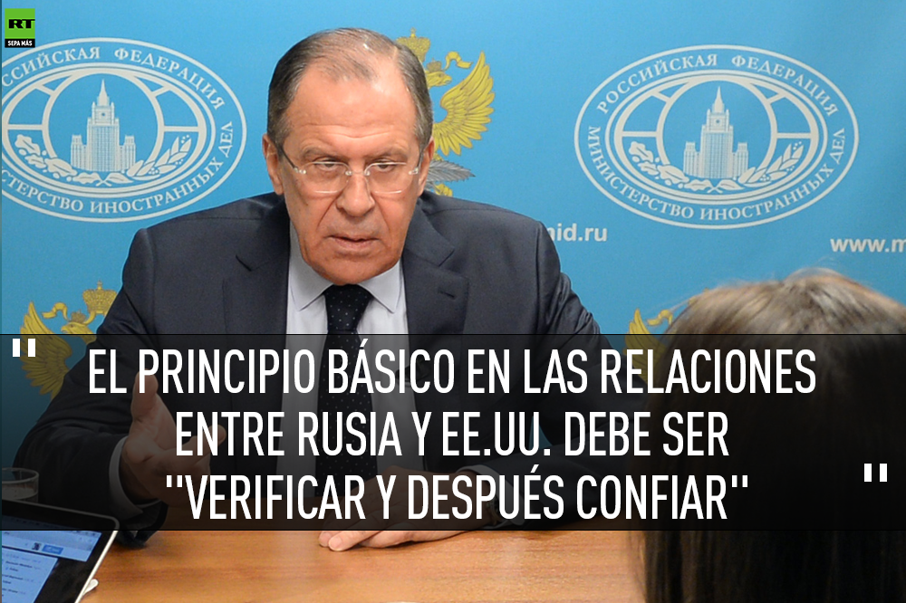 Comentando las relaciones ruso-estadounidenses, el canciller explicó que el principio básico para Rusia en estas relaciones está más bien en el hecho de "verificar y después confiar". En ese mismo contexto dijo que "en cuanto al presidente Obama hubo muchas esperanzas, pero siguieron muchas guerras, guerras ilógicas, irrelevantes", lamentó.
