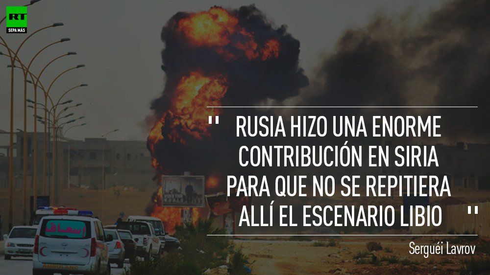 "En Siria creo que hemos hecho una gran contribución, ya que allí de momento no se repite ni se repetirá el escenario libio. No permitimos la aprobación de una intervención desde el exterior", dijo el jefe de la diplomacia rusa, recordando el momento cuando Rusia y China vetaron en el Consejo de Seguridad de la ONU la resolución sobre Siria.