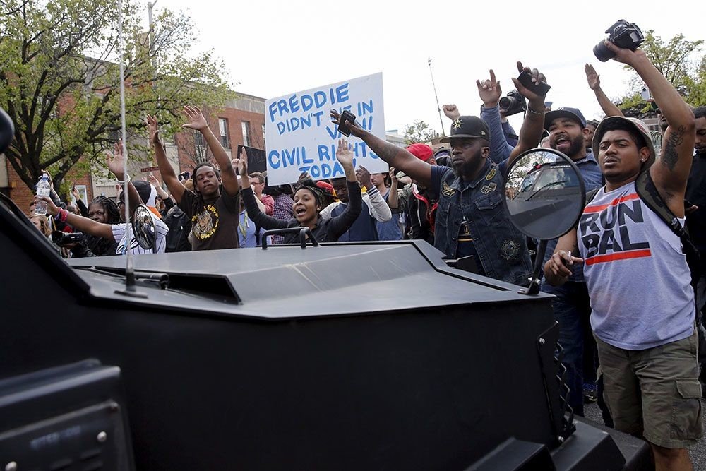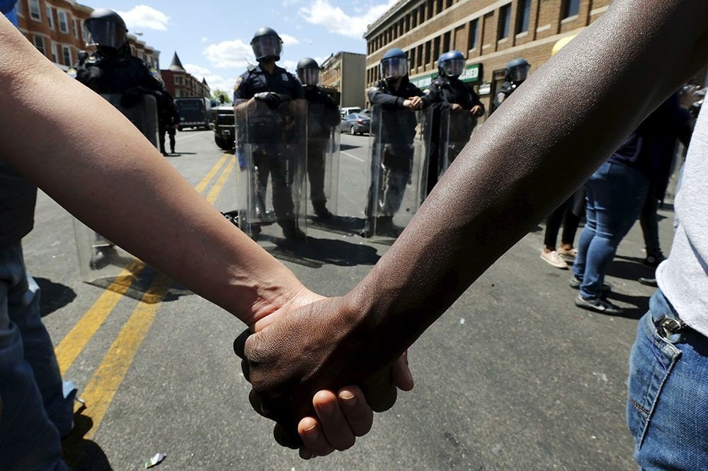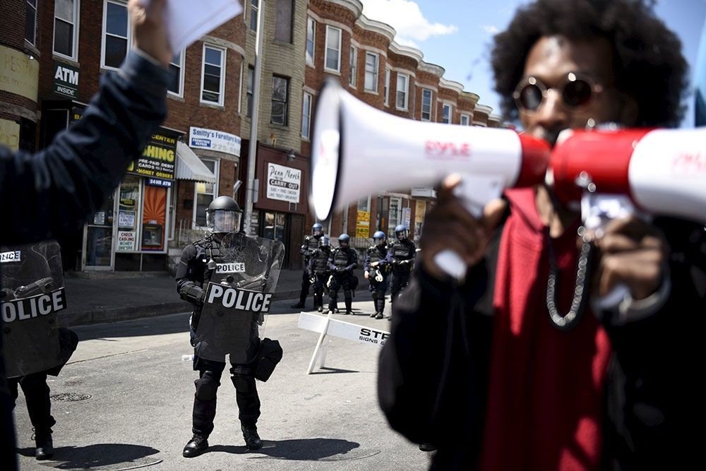 — Nicolás Medina Mora (@MedinaMora) 29 апреля 2015Anteriormente, con el fin de evitar los disturbios masivos que se han registrado este lunes en Baltimore tras el funeral de Freddie Gray, el joven afroamericano fallecido a causa de una grave herida en la espalda mientras se encontraba en custodia policial, un grupo de activistas ha decidido separar con sus cuerpos a protestantes y policías.