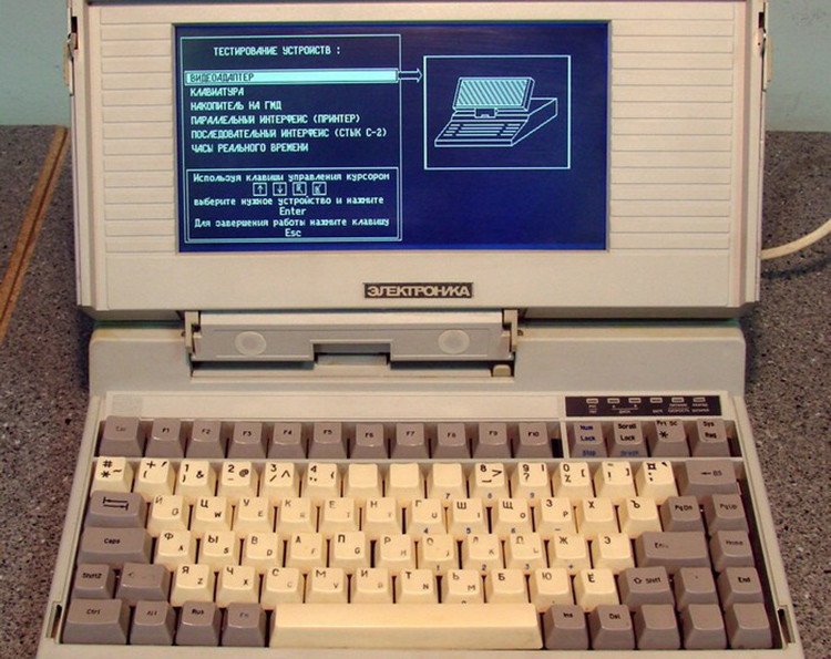 El primer ordenador portátil creado en la Unión Soviética se denominaba Elektrónika MS1504, tenía una memoria operativa de 640 kilobytes y pesaba 4,5 kilos. Basado en el ordenador T1100 PLUS de Toshiba, empezó a producirse en 1991.