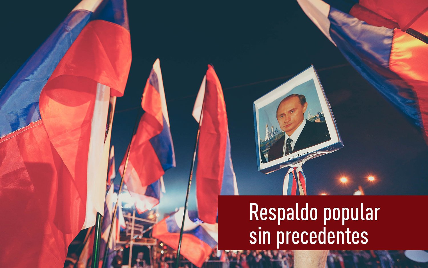 Los índices de aprobación del mandatario ruso alcanzaron su punto álgido el año 2014, cuando en diciembre la mayoría aplastante de los ciudadanos calificó a Putin como "el hombre del año". La calificación electoral del jefe de Estado ruso y el nivel de apoyo a sus políticas entre la población ha alcanzado récord desde el inicio del año pasado.