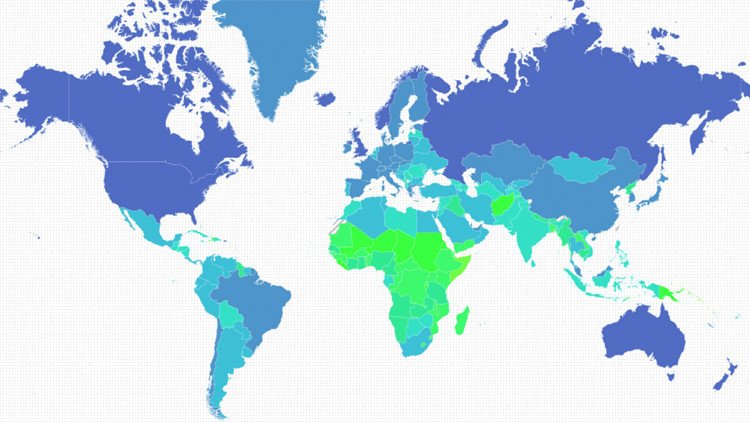 Según los resultados citados por 'The Washington Post', los países que menos efectos negativos sufrirían ante un posible cambio climático son Rusia, EE.UU., Canadá y Australia. Al mismo tiempo, casi todos los países europeos, latinoamericanos y del sudoeste de Asia pueden estar relativamente 'tranquilos' ante el calentamiento global. En el mapa, los países más vulnerables están marcados con color verde. Por su parte, mientras más oscuro es el color azul, menos vulnerable es el país que indica.
