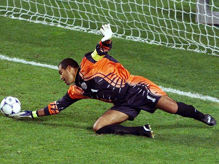 José Luis Chilavert, Paraguay. El guardameta goleador paraguayo es una de las figuras más emblemáticas de la historia futbolística de su país, pero poco pudo hacer en las tres ediciones del torneo continental que participó (1991, 1993 y 1997) a pesar de sus reacciones felinas bajo los tres palos.