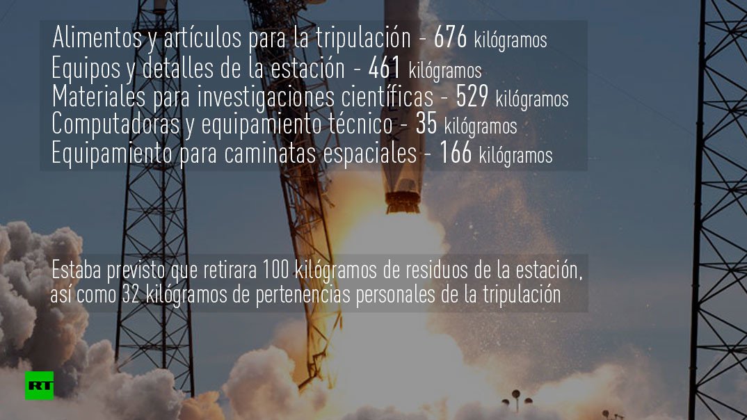 — Elon Musk (@elonmusk) June 28, 2015La nave de carga Dragon también de SpaceX, solicitada por la NASA, llevaba alimentos, materiales para investigaciones científicas y un nuevo puerto de acoplamiento para futuras cápsulas comerciales.
