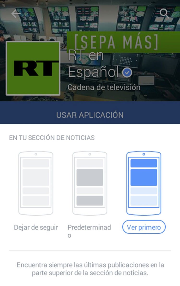 Los usuarios de los dispositivos con el sistema operativo Android tendrán que entrar de forma individual en cualquier página que le interese y al pulsar 'Siguiendo' al lado de su nombre elegir la opción 'Ver primero'.