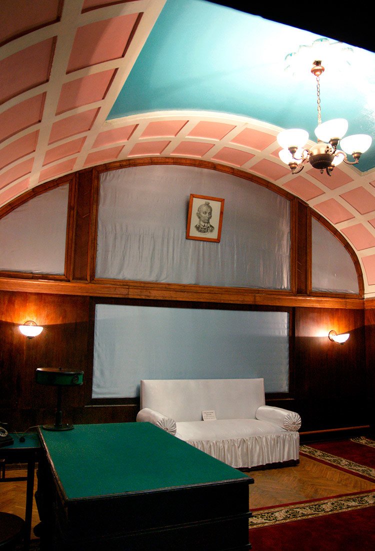 El búnker fue excavado a 37 metros de profundidad, lo que equivale, más a menos, a la altura de un edificio de 12 pisos. Equipado con ascensores, cuenta con una sala de conferencias para 115 personas y una habitación personal de Stalin.