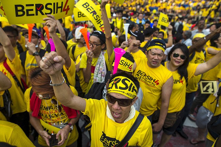 Los manifestantes, muchos de los cuales acamparon en el centro de la ciudad, llevan camisas amarillas con el nombre del movimiento Bersih (Coalición por unas elecciones limpias y justas). Las acciones de protesta estallaron después de una filtración de documentos de los que se desprendía que el mandatario malasio recibió unos 700 millones de dólares de entidades vinculadas al fondo estatal de la deuda.