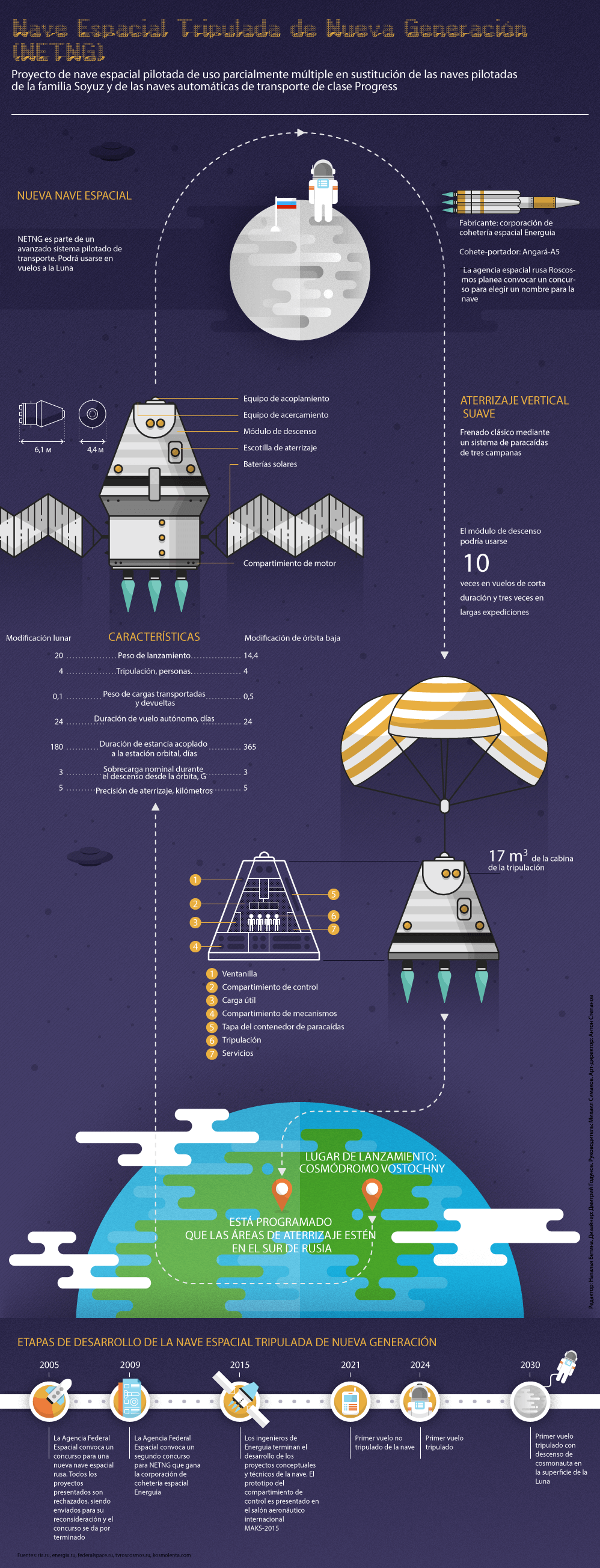 El presidente de Energuia, Vladímir Solntsev, asegura que este nuevo dispositivo multiuso tendrá capacidad para cuatro tripulantes y será mucho más espacioso y cómodo que la nave espacial Soyuz.