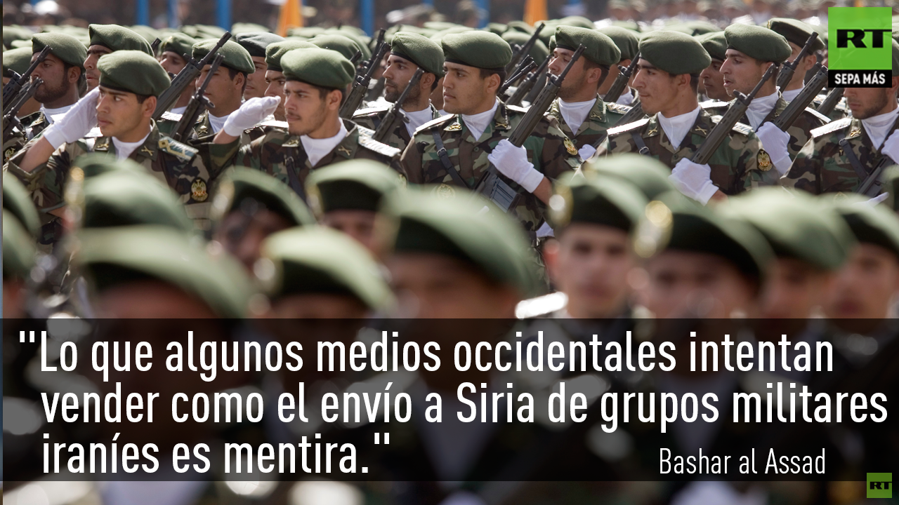 "Lo que algunos medios de comunicación occidentales intentan vender como el envío a Siria de grupos militares iraníes es mentira", sostuvo. "Teherán nos suministra material bélico. Desde luego, mantenemos un intercambio de especialistas militares entre Siria e Irán, pero este intercambio siempre ha existido. Por supuesto, este tipo de cooperación bilateral se intensifica en condiciones de guerra. Sí, la ayuda de Teherán es un elemento clave que contribuye a la solidez de Siria de cara a esta guerra difícil y bárbara".