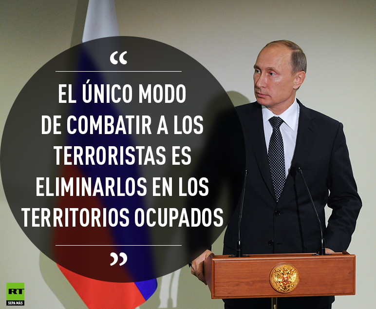 "Rusia está convencida de que la lucha contra el terrorismo debe llevarse a cabo en estricta conformidad con el derecho internacional, es decir, de acuerdo con la resolución de la ONU o a petición de un Gobierno oficial", afirmó Putin.