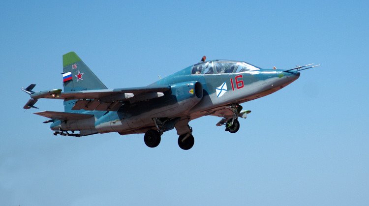 El Su-25 es un avión subsónico y es capaz de llevar gran cantidad de misiles y bombas, además de un cañón de 30 milímetros para el apoyo aéreo cercano.