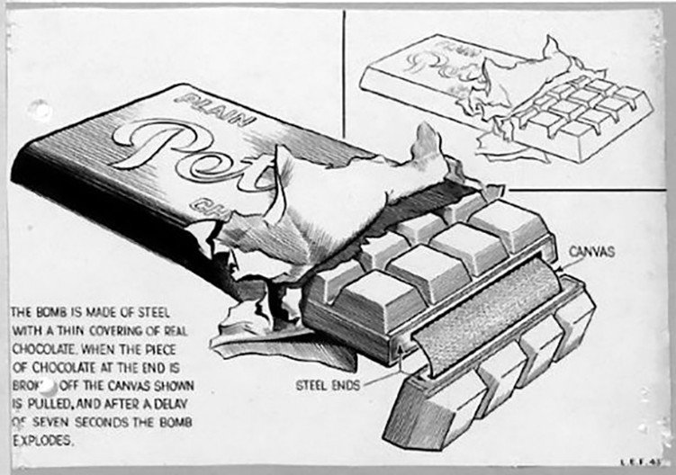 Los bocetos de estos dispositivos (entre los que figuran una bomba en unos fuegos artificiales, un 'puré de patatas explosivo' y 'chocolate minado') fueron hallados cuando la hija de Rothschild, Victoria, los encontró mientras limpiaba la casa familiar en Suffolk. Victoria los envió a la viuda del artista, que en los años 50 se convirtió en un conocido pintor de paisajes y murió en 2009 a los 89 años.