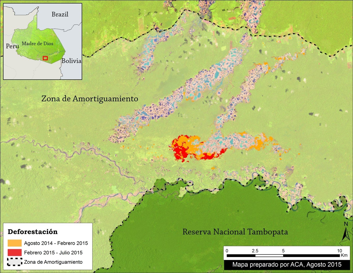 Cabe destacar que el bosque que va desapareciendo por la minería ilegal se encuentra a unos seis kilómetros de la Reserva Nacional Tambopata. Se trata de una de las zonas del mundo con una mayor biodiversidad, ahora amenazada por la deforestación.