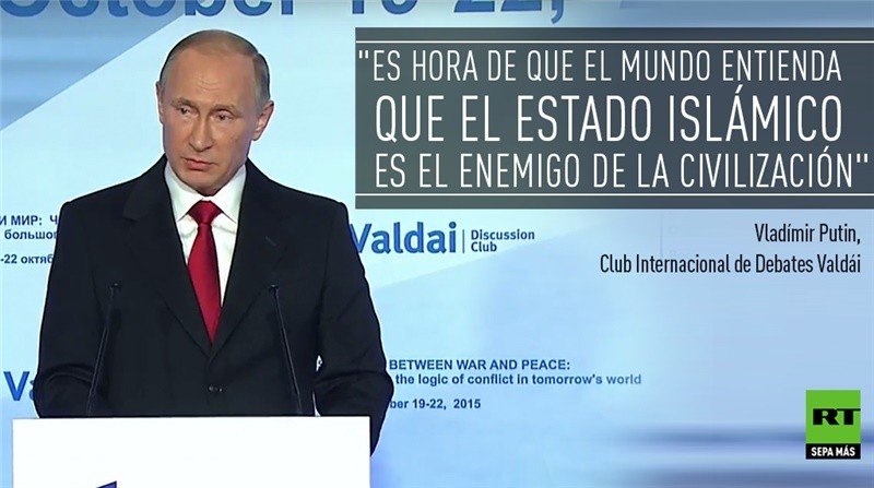 El presidente ruso dijo que "el Estado Islámico habría logrado un trampolín para su expansión global" de haberse hecho con el control de Damasco en Siria o de Bagdad en Irak. Putin se mostró preocupado por la situación en Oriente Medio, y advirtió que "los intentos de reorganizar la región la convirtieron en una cerilla, lo que condujo a una explosión y aumentó el riesgo para todo el mundo".