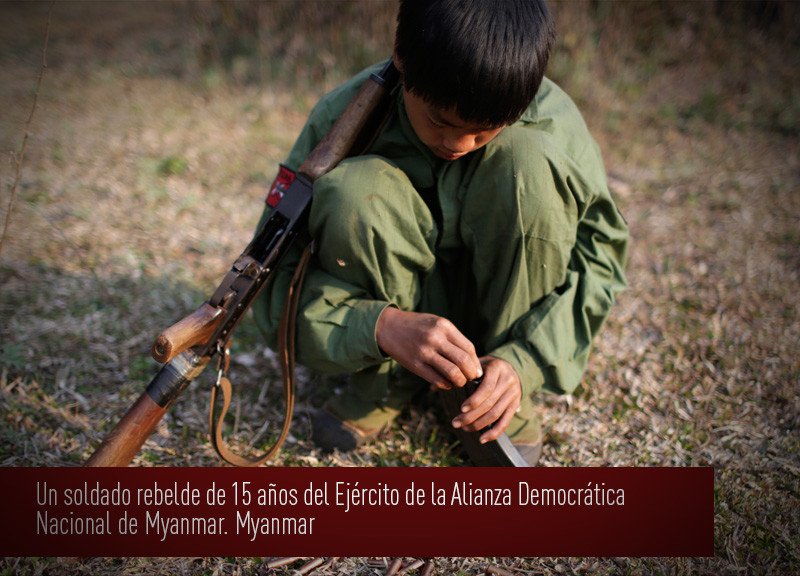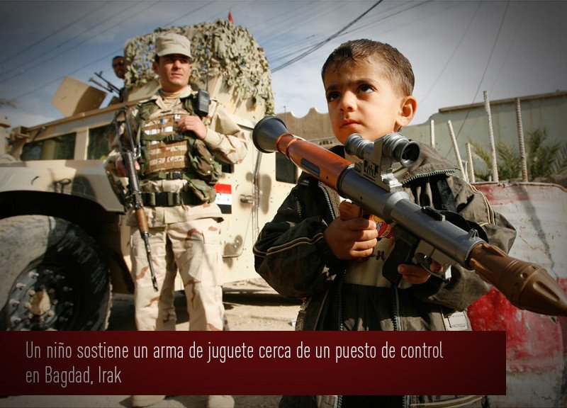"En un mundo donde millones de niños 'juegan a la guerra' con pistolas de juguete o a través de videojuegos, otros muchos niños y niñas se ven abocados a vivir la guerra de verdad, convirtiéndose en combatientes desde edades muy tempranas", denuncia Unicef (Fondo Internacional de Emergencia de las Naciones Unidas para la Infancia).