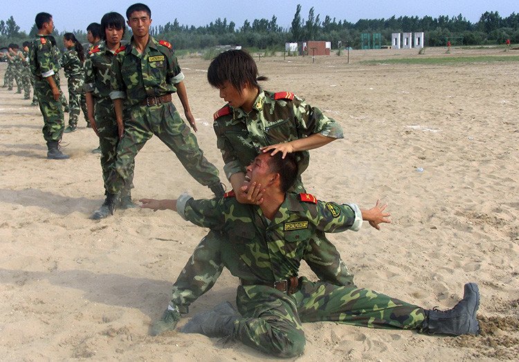 Los comandos chinos han de ser capaces de golpear hasta 300 veces al día un saco lleno de polvo de metal con manos, puños, codos, rodillas y pies. Asimismo, deben poder romper con la cabeza piezas de madera, botellas y ladrillos; golpear paredes o árboles hasta 500 veces al día y ponerse de cabeza durante 30 minutos.