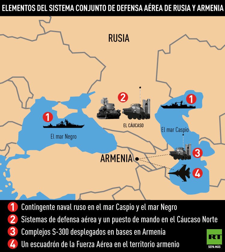 Este "paraguas de seguridad" permitirá el intercambio de información entre Armenia y Rusia sobre la situación aérea en toda la región: desde el Caspio hasta el mar Negro. Es decir, la información sobre cualquier acción en los cielos de la región estará a disposición de las fuerzas armenias de defensa aérea, estiman algunos expertos militares.