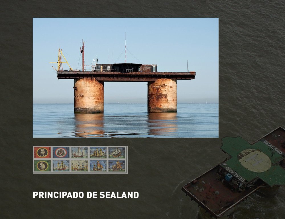 Es un Estado autoproclamado con una población de 60 personas. Sealand está situado en la plataforma marina Roughs Tower, construida por la Marina Real británica en 1942 y localizada en el mar del Norte, a 10 kilómetros de la costa de Suffolk, en el Reino Unido.