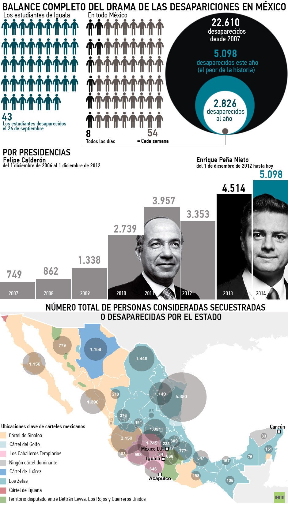 En la siguiente infografía se puede observar la situación de las desapariciones en México a finales de 2014.